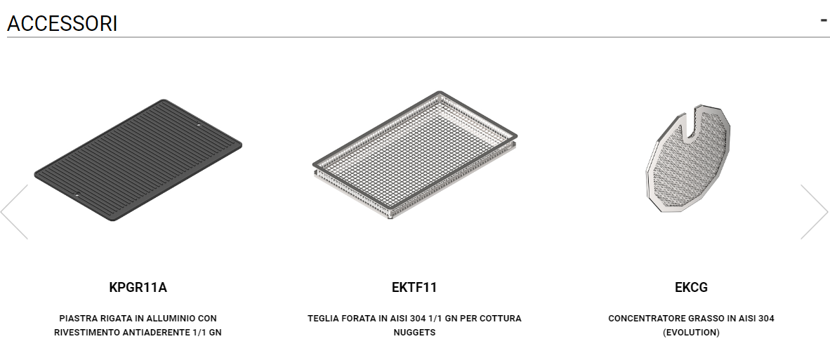 EKF-511-TC là loại nhỏ nhất trong phạm vi Touch nhưng không hiệu suất thấp nhất. Được thiết kế cho các chuyên gia khó tính nhất, những người cần kết hợp công nghệ của một sản phẩm hiệu suất cao với không gian hạn chế trong nhà bếp của họ. Lasagne, crepes, rang xay, philê, nấu chân không, hấp hoặc au gratin món ăn phụ: tất cả điều này và nhiều hơn nữa nhờ các chức năng hơi trực tiếp và khả năng lưu trữ lên đến 240 công thức nấu ăn.